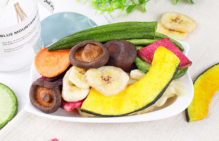 山东光头李记食品有限公司从全国筛选优质的原材料,对于原材料进行人工挑选,剔除次品差品,对其进行清洗、杀青、锁鲜,最后进行脱水,制成清香酥脆的果蔬脆。