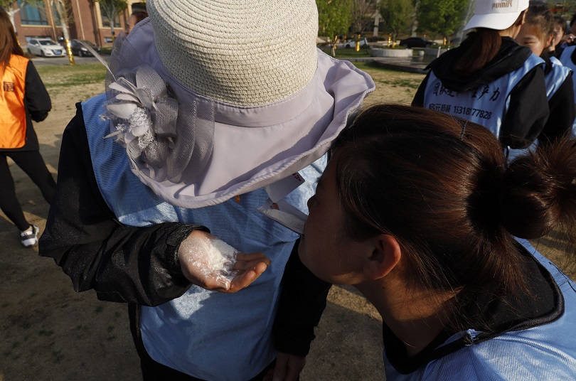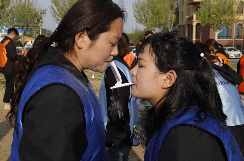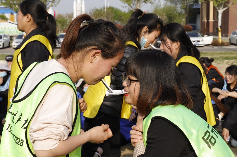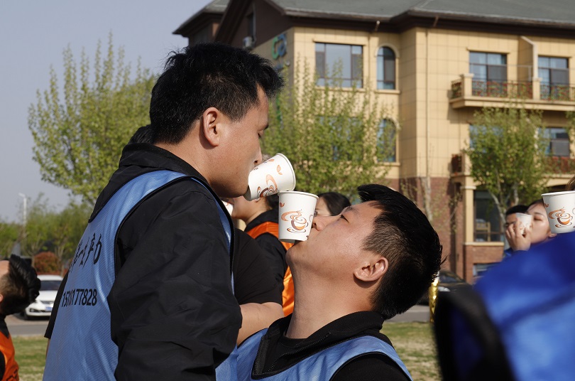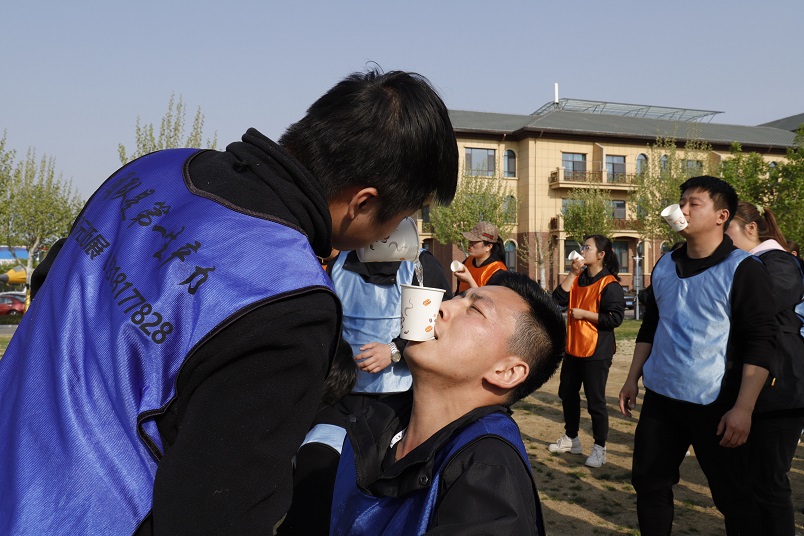 趣味横生的团队纸杯传水活动