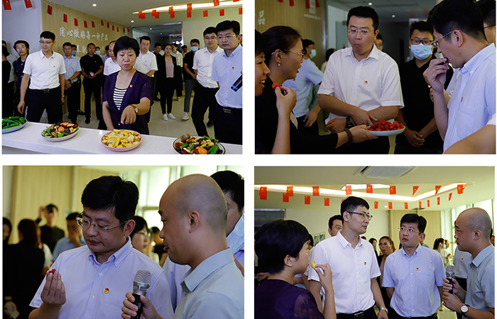李总介绍完了生产部的基本情况,邀请各位领导品尝提前准备的果蔬脆。冻干草莓脆、综合果蔬脆、菠萝蜜脆,清新的果蔬香、酥脆的口感,像吃果蔬味的“薯片”一样,领导们品尝了之后也都赞不绝口,仅需一颗,便会被它的味道所征服!